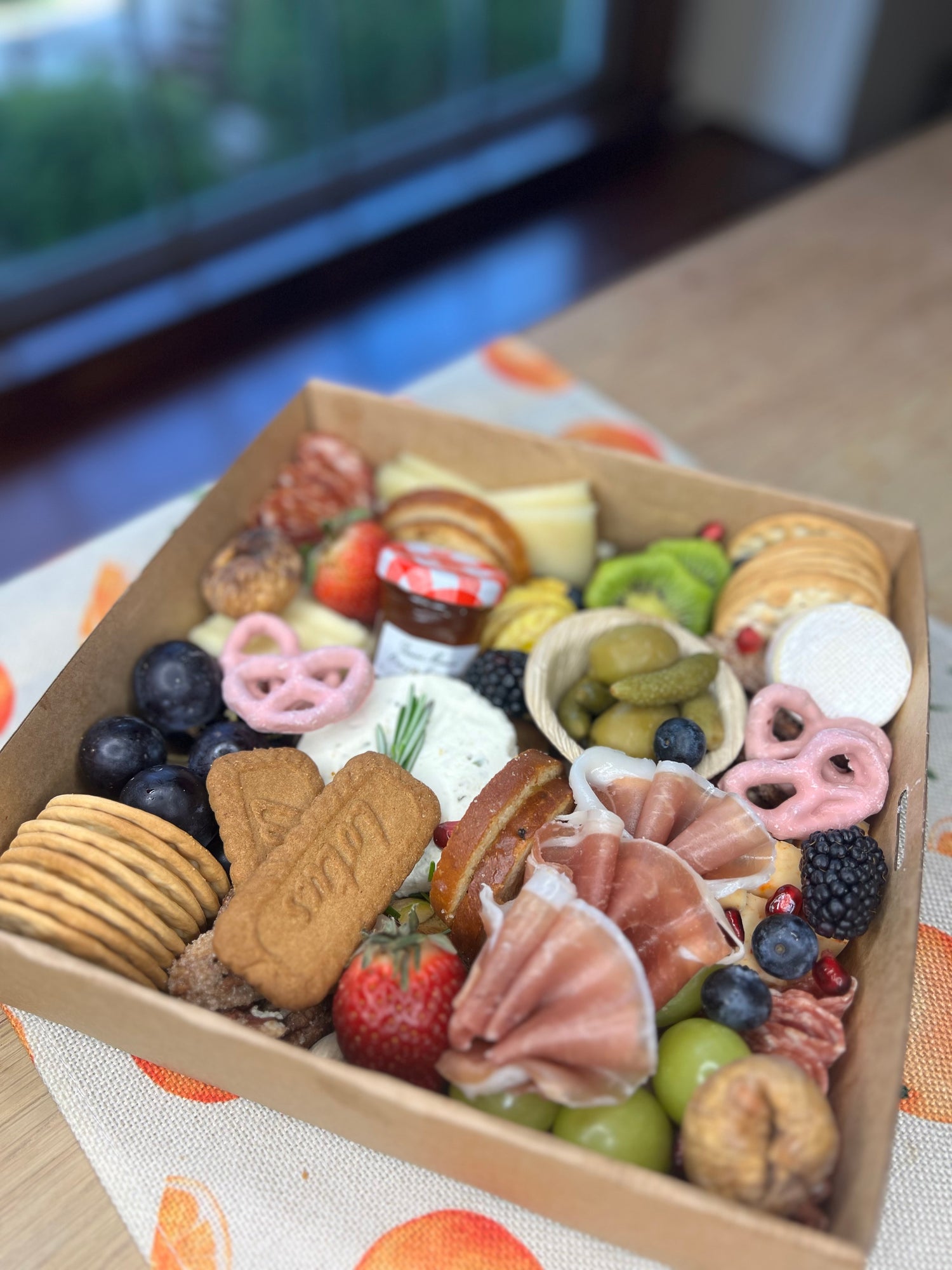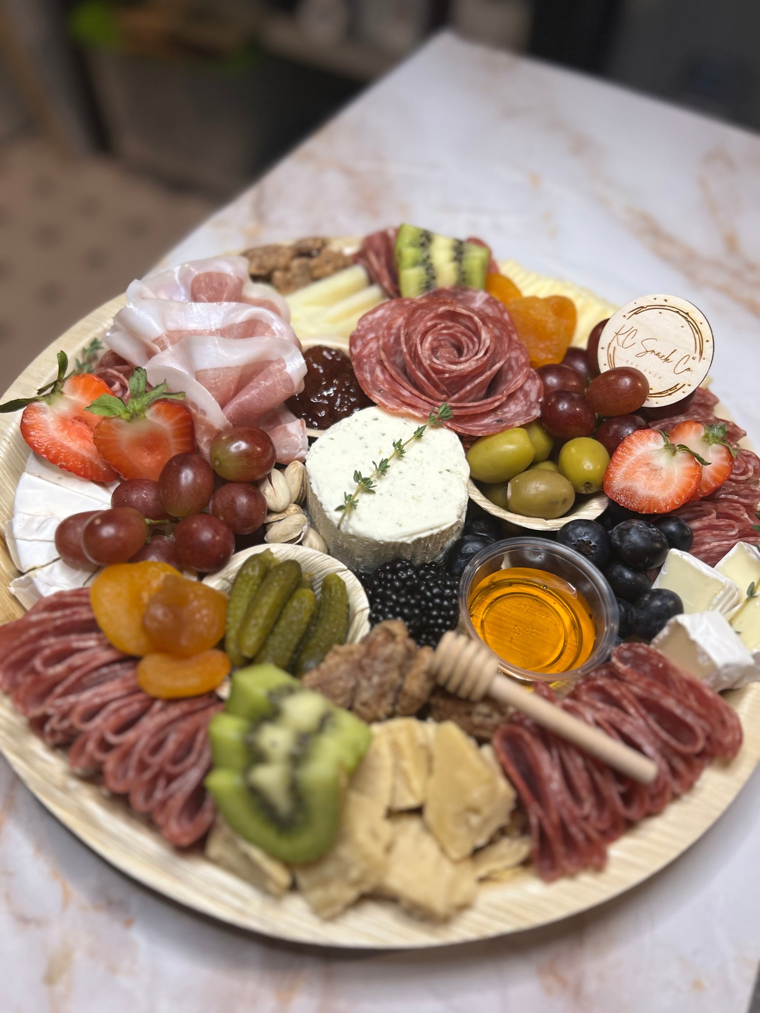 Our signature medium size served on a 14 inch bamboo tray, crafted to bring people together with timeless flavors. A generous array of premium meats, cheeses, fresh fruits, and decadent treats — perfect for family dinners or small parties. Serves approximately 10.
